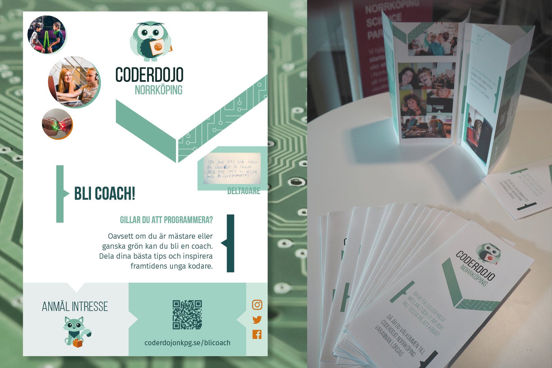 Jag engagerar mig ideellt inom CoderDojo Norrköping. Jag är grafiskt ansvarig och sitter i föreningens styrelsen. CoderDojo är en internationell rörelse med målet att ungdomar ska få testa på att koda.